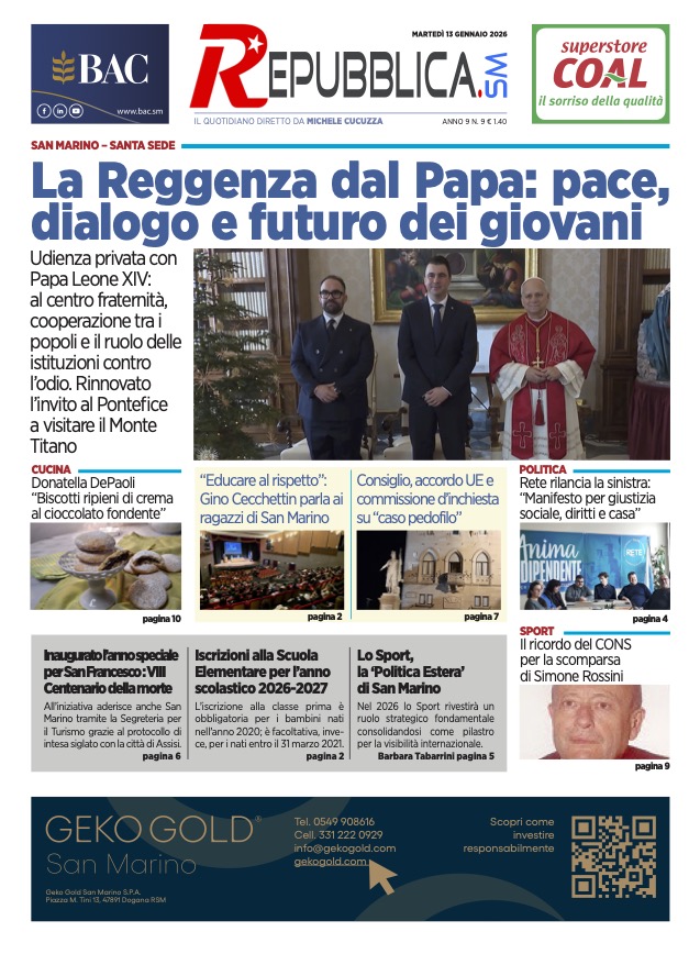 Leggi successivoSan Marino. La prima pagina de LA SERENISSIMASuccessivo