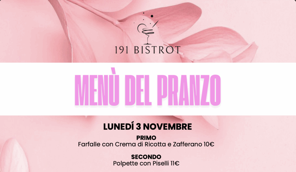 Ogni settimana al 191 Bistrot Coffee&Food trovi un menu diverso, pensato per offrirti piatti genuini, sapori autentici e la giusta pausa di gusto nel cuore di Serravalle.