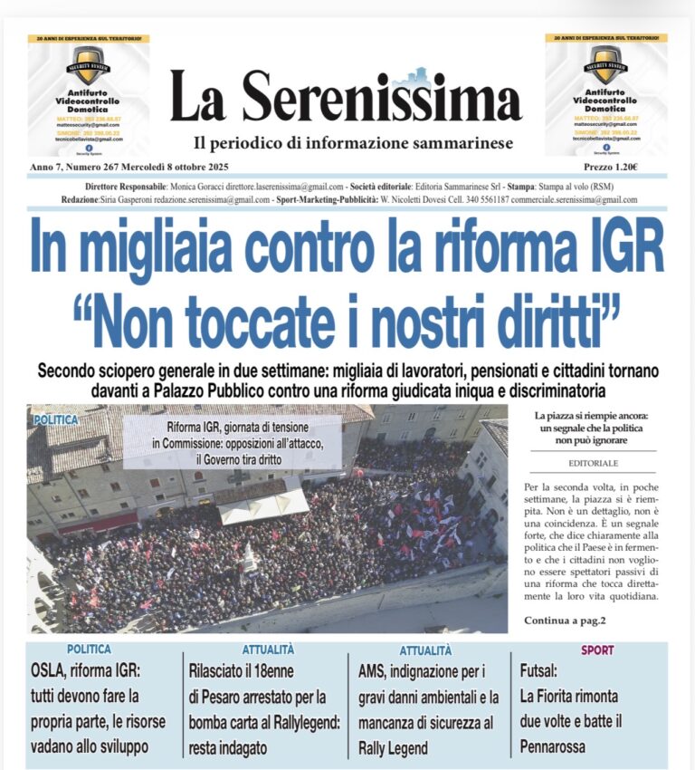 San Marino. Riforma Igr, sindacati: “Migliaia ancora in piazza, secondo sciopero generale dall’effetto dirompente” Leggi tutto » 08/10/2025