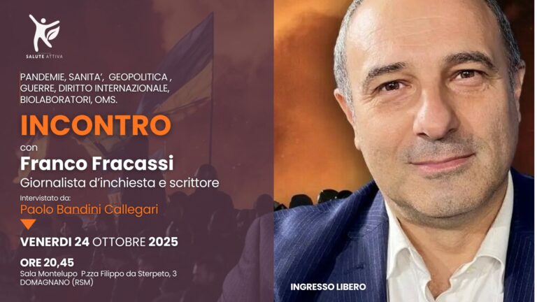 San Marino. Associazione SALUTE ATTIVA: incontro con Franco Fracassi. Venerdì 24 ottobre ore 20,45 presso la Sala Montelupo a Domagnano Leggi tutto » 23/10/2025