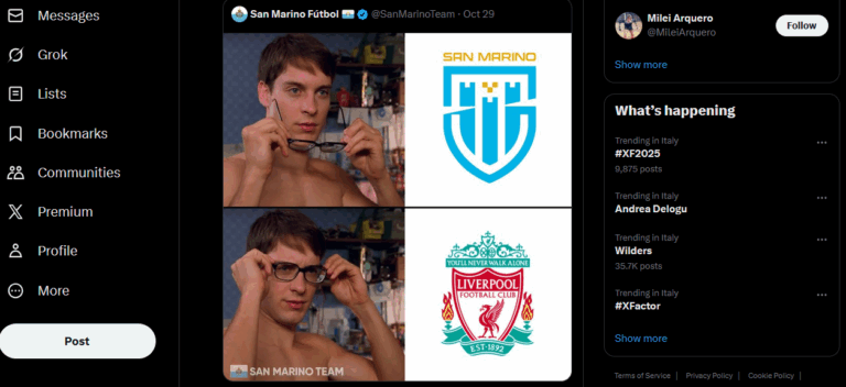 Sport?… Crisi Liverpool FC, arriva l’ironia da San Marino: “Provate a giocare contro di noi”. E i tifosi biancazzurri conquistano le pagine di Der Spiegel Leggi tutto » 31/10/2025