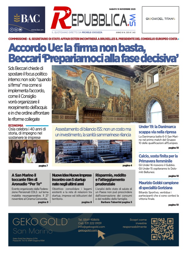 Il ”genio” Beccari (ed i suoi sodali) saranno ricordati come coloro che avranno distrutto San Marino e aperto agli islamici, con tutto quello che ne consegue. Ecco cosa succederà … di Marco Severini – direttore GiornaleSM Leggi tutto » 15/11/2025