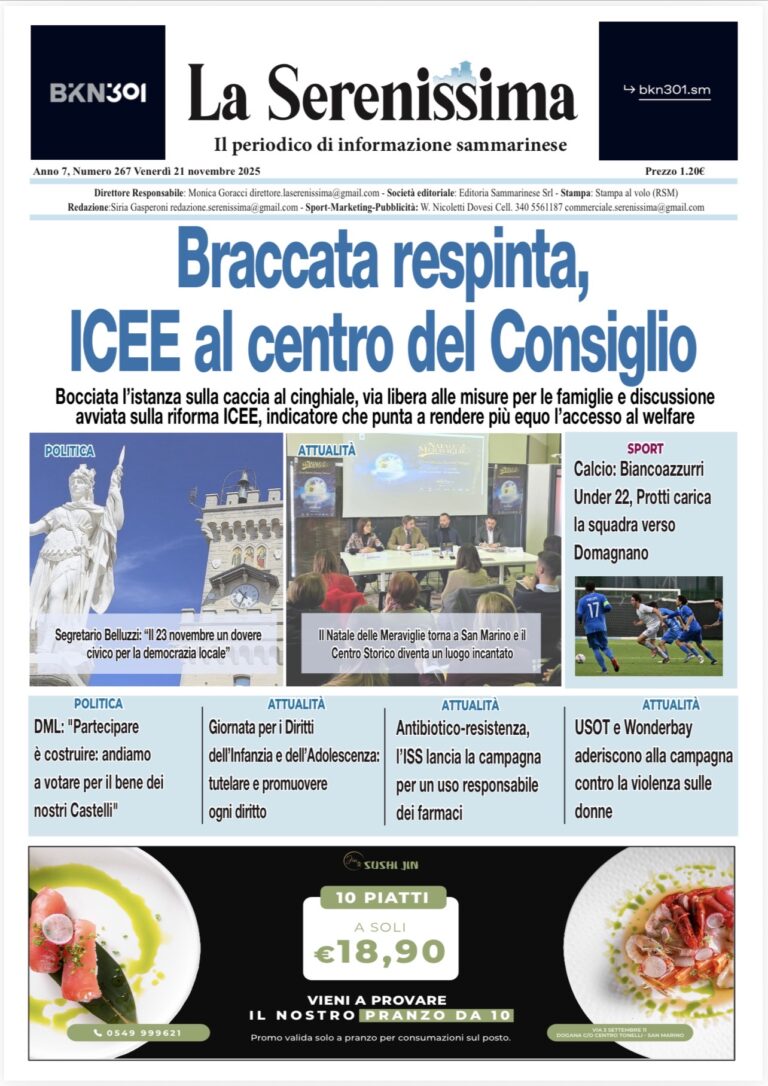 San Marino. Consiglio Grande e Generale – Report giovedi? 20 novembre 2025 pomeriggio Leggi tutto » 21/11/2025