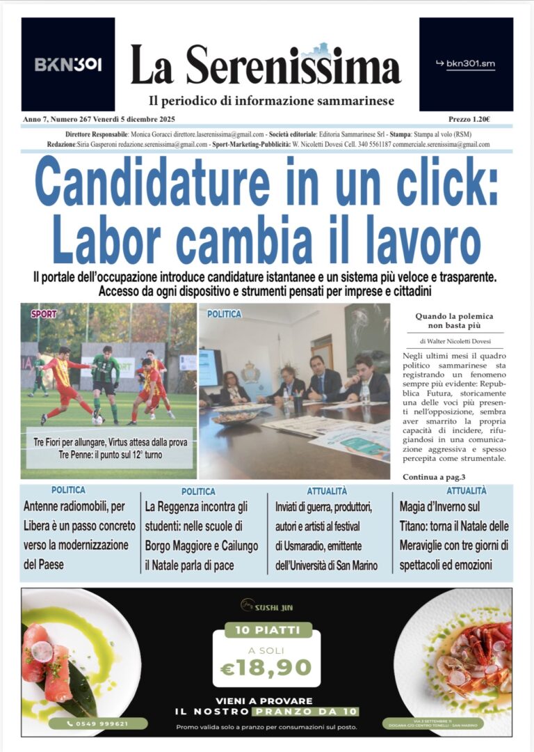 San Marino, PA a dieta? Macché, la vera Spending Review non verifica se la spesa è “legittima”, ma se è intelligente… – di Enrico Lazzari Leggi tutto » 05/12/2025