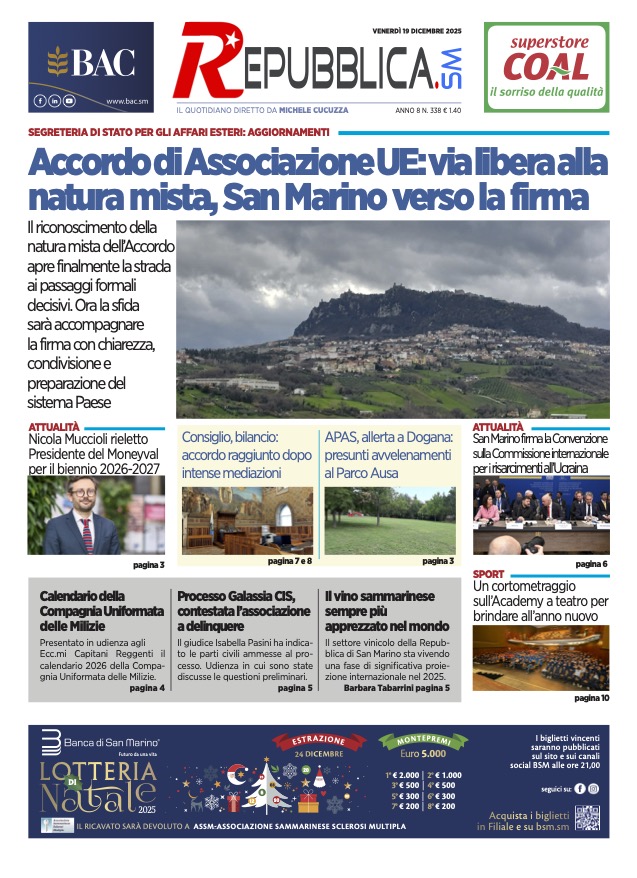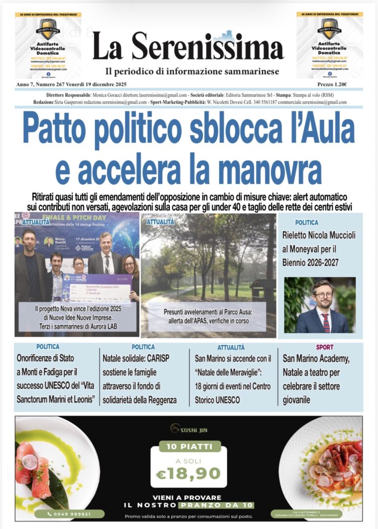 San Marino, manovra finanziaria al centro dei lavori del Consiglio Grande e Generale: intesa nella notte su famiglie e centri estivi, l’Aula sblocca il Bilancio 2026 Leggi tutto » 19/12/2025