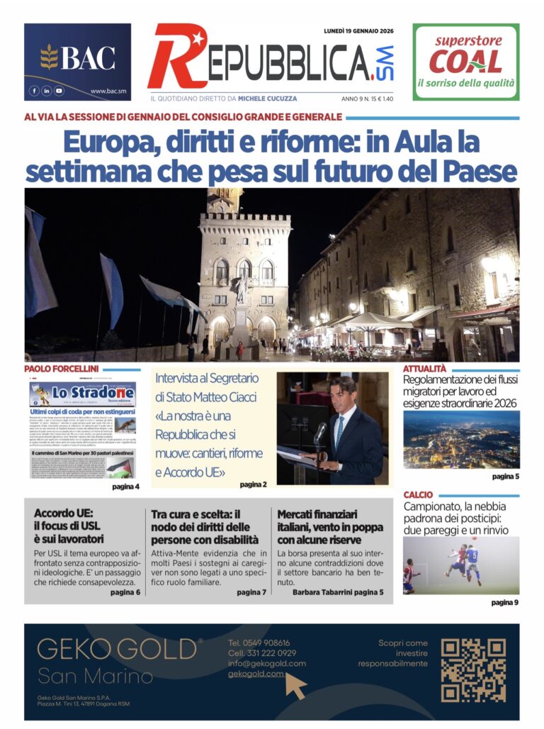 San Marino. ELEGO: ”Doppia cittadinanza: una riforma da governare tra diritti, identità e sovranità” Leggi tutto » 19/01/2026