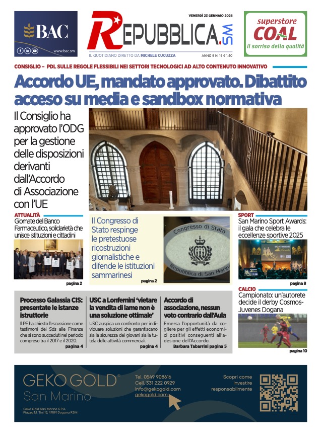 San Marino. Botta e risposta tra Giovanni Zonzini (Rete) ed Enrico Lazzari sul decreto palestinesi Leggi tutto » 23/01/2026