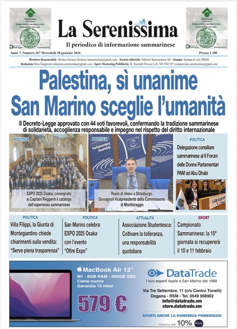 Il “Decreto Palestinesi” un po’ “rattoppato” è legge: dalle piazze in festa per il Carnevale dell’orrore alle contrade di San Marino… Dove se critichi sei razzista! … di Enrico Lazzari Leggi tutto » 28/01/2026