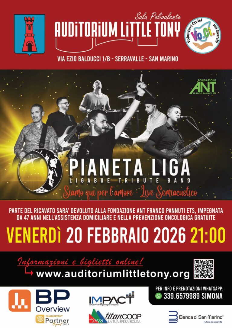 San Marino. Serravalle, omaggio a Ligabue: il 20 febbraio all’Auditorium Little Tony arrivano i Pianeta Liga Leggi tutto » 19/02/2026