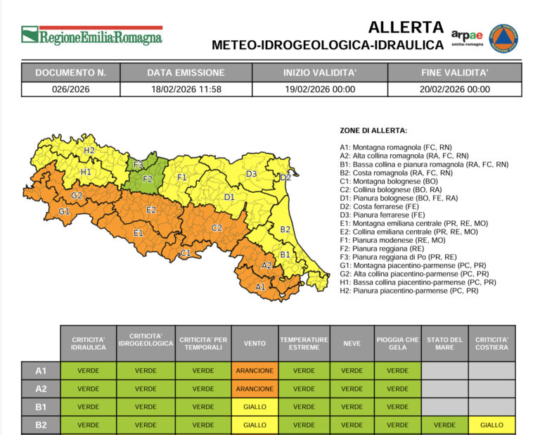 Regione. Emessa allerta meteo “gialla” per vento e criticità costiere per giovedì 19 febbraio Leggi tutto » 19/02/2026