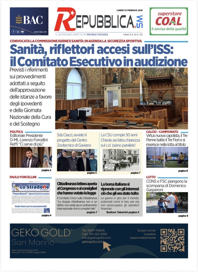 San Marino. Lettera aperta ai Signori del Congresso di Stato e ai Consiglieri che hanno votato la legge sulla doppia cittadinanza Leggi tutto » 23/02/2026