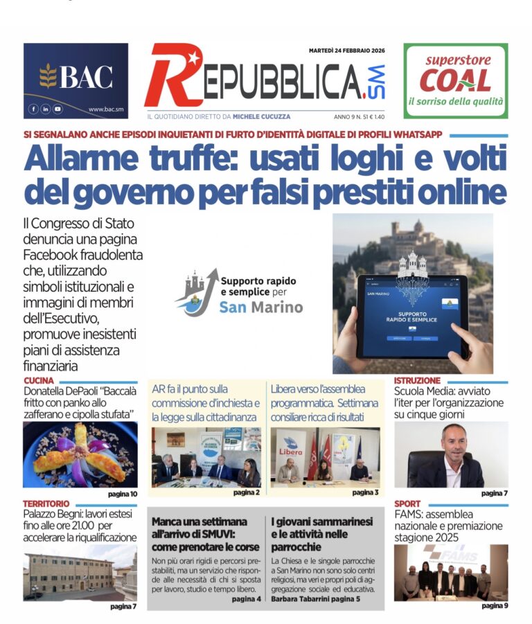 Banca di San Marino, il Tribunale parla di fatti più gravi: il Paese pretende chiarezza e la Commissione d’inchiesta … di Emilio Della Balda Leggi tutto » 24/02/2026