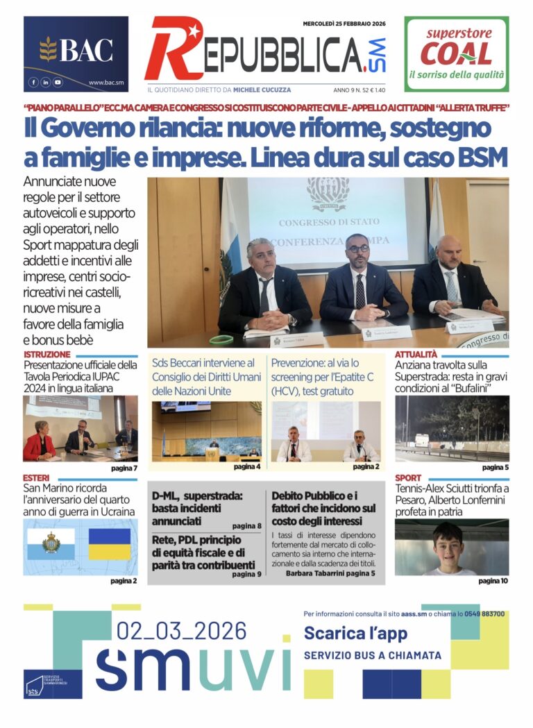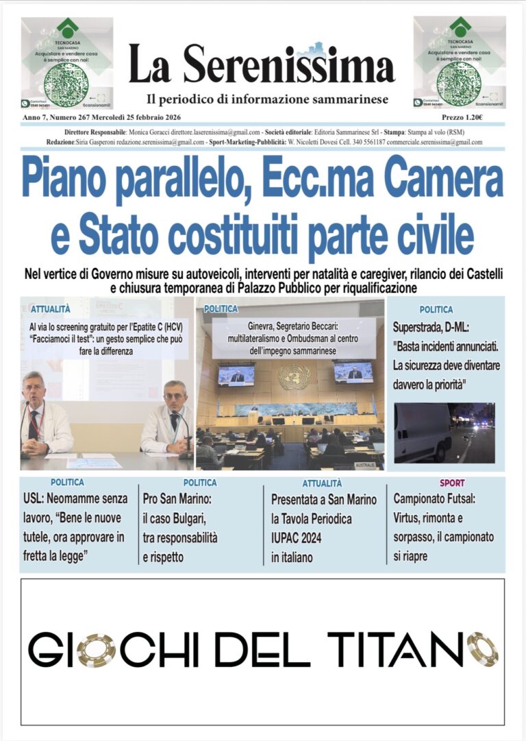 San Marino. Il paradosso del macchinario in standby. Se l’ISS prendesse spunto dal caso Viridis con i suoi 10 appartamenti venduti in un mese … di Marco Severini Leggi tutto » 25/02/2026