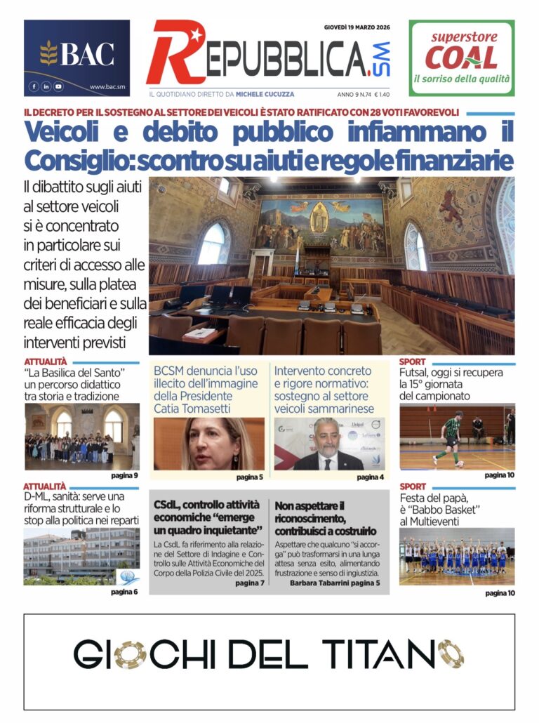 San Marino. Consiglio Grande e Generale – Mercoledì 18 marzo, pomeriggio. Resoconto Askanews Leggi tutto » 19/03/2026