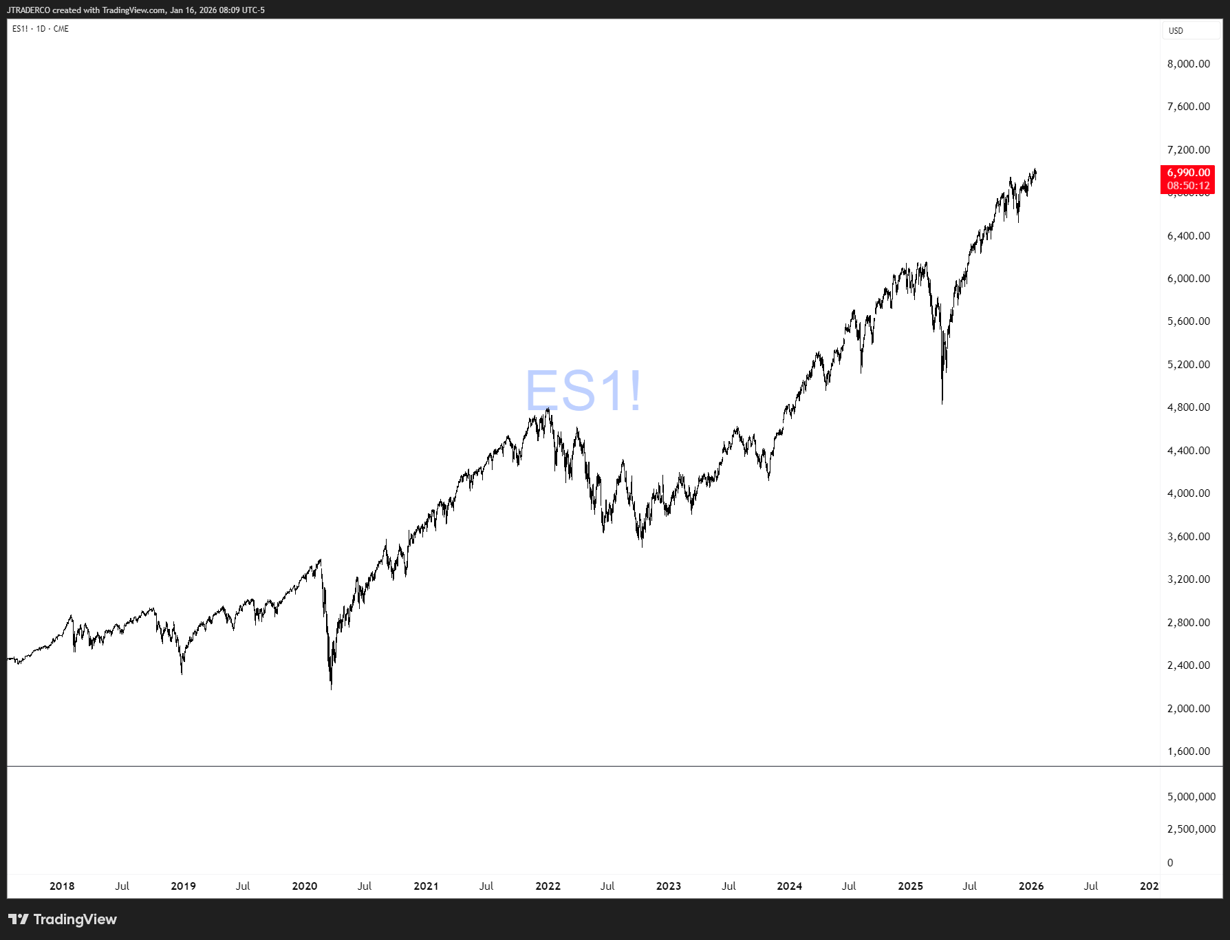 Grafico mercato SP500 (ES Futures) ultimi 7 anni
