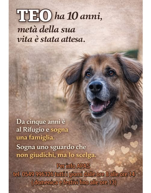 Le cicatrici del passato si portano dentro e Teo non fa eccezione. Con gli estranei è diffidente, non si fida subito, non si concede al primo sguardo. Ma chi saprà rispettare i suoi tempi scoprirà un’anima profonda, fedele, capace di un affetto sincero e autentico. Con chi conosce e ama, Teo si illumina: è intelligente, attivo, curioso, adora passeggiare e vorrebbe scoprire il mondo.