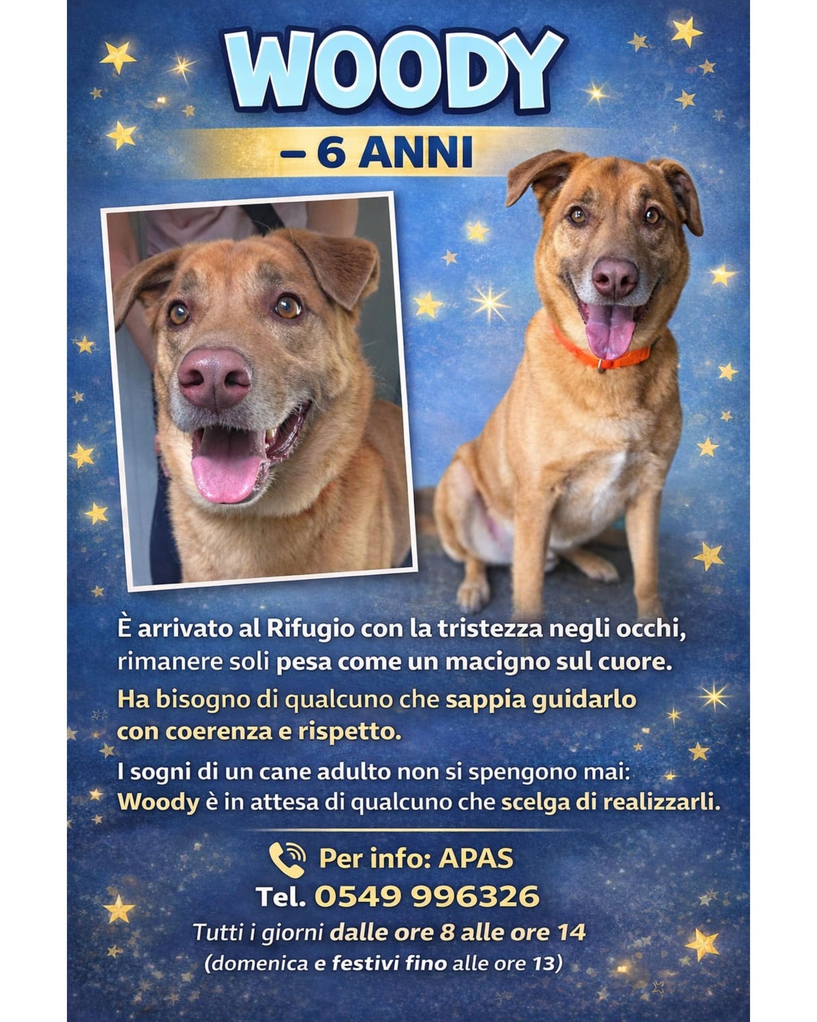 Spesso i cani ci parlano con un linguaggio che non sempre sappiamo interpretare, e proprio per questo Woody ha bisogno di qualcuno che sappia guidarlo con coerenza e rispetto.