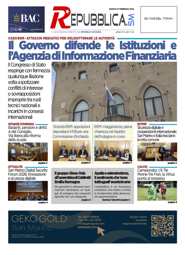 San Marino. Nuova Rubrica: ”Tutto quello che è successo sul Titano, OGGII! L’elenco di tutti gli articoli pubblicati in una sola pagina! Leggi tutto » 20/02/2026