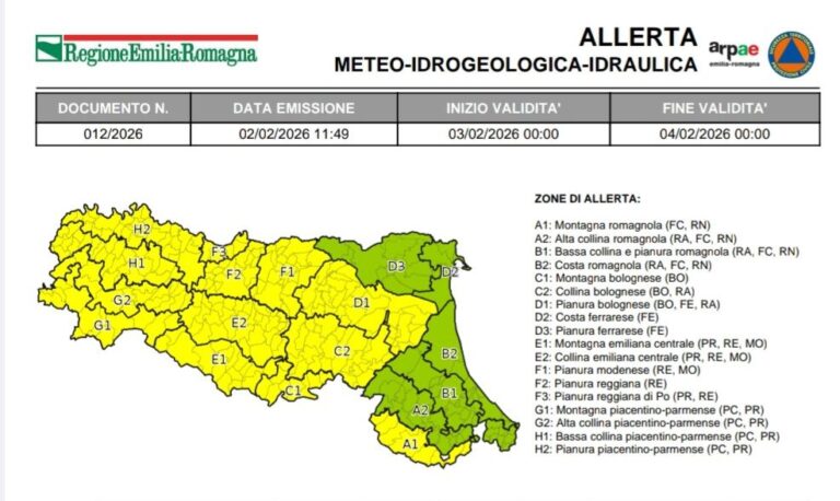 Allerta meteo della Protezione Civile dell’Emilia Romagna per la giornata di domani. Valida dalle 00:00 del 03 febbraio 2026 fino alle 00:00 del 04 febbraio 2026 Leggi tutto » 02/02/2026