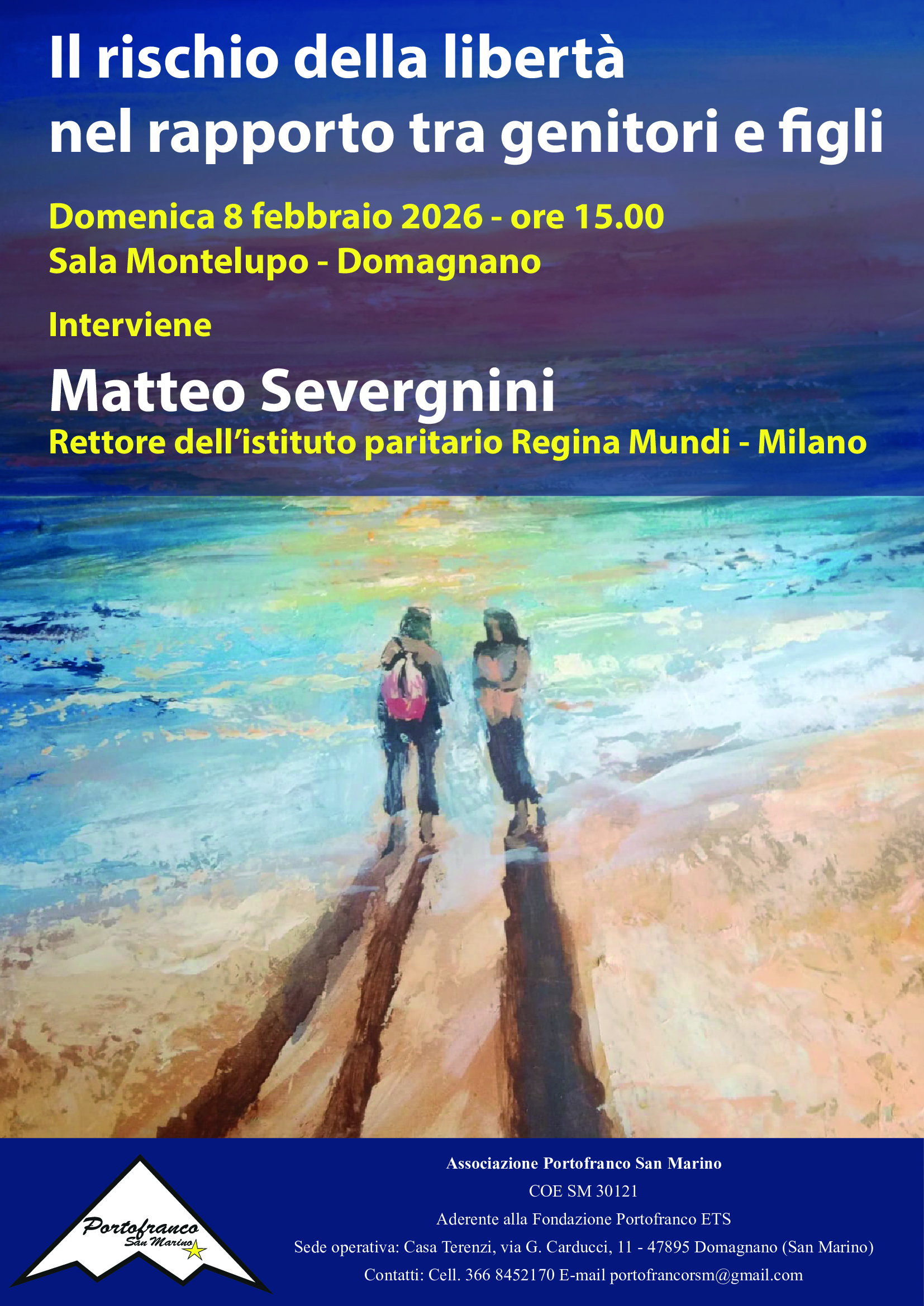 Associazione Portofranco San Marino: “Il rischio della libertà nel rapporto fra genitori e figli”. Domenica 8 febbraio 2026 – ore 15.00  Sala Montelupo – Domagnano