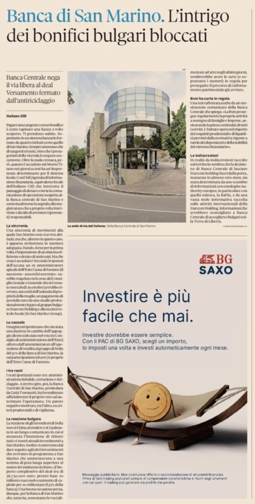 Banca di San Marino. L’intrigo dei bonifici bulgari bloccati … di Stefano Elli, Il Sole 24 ore