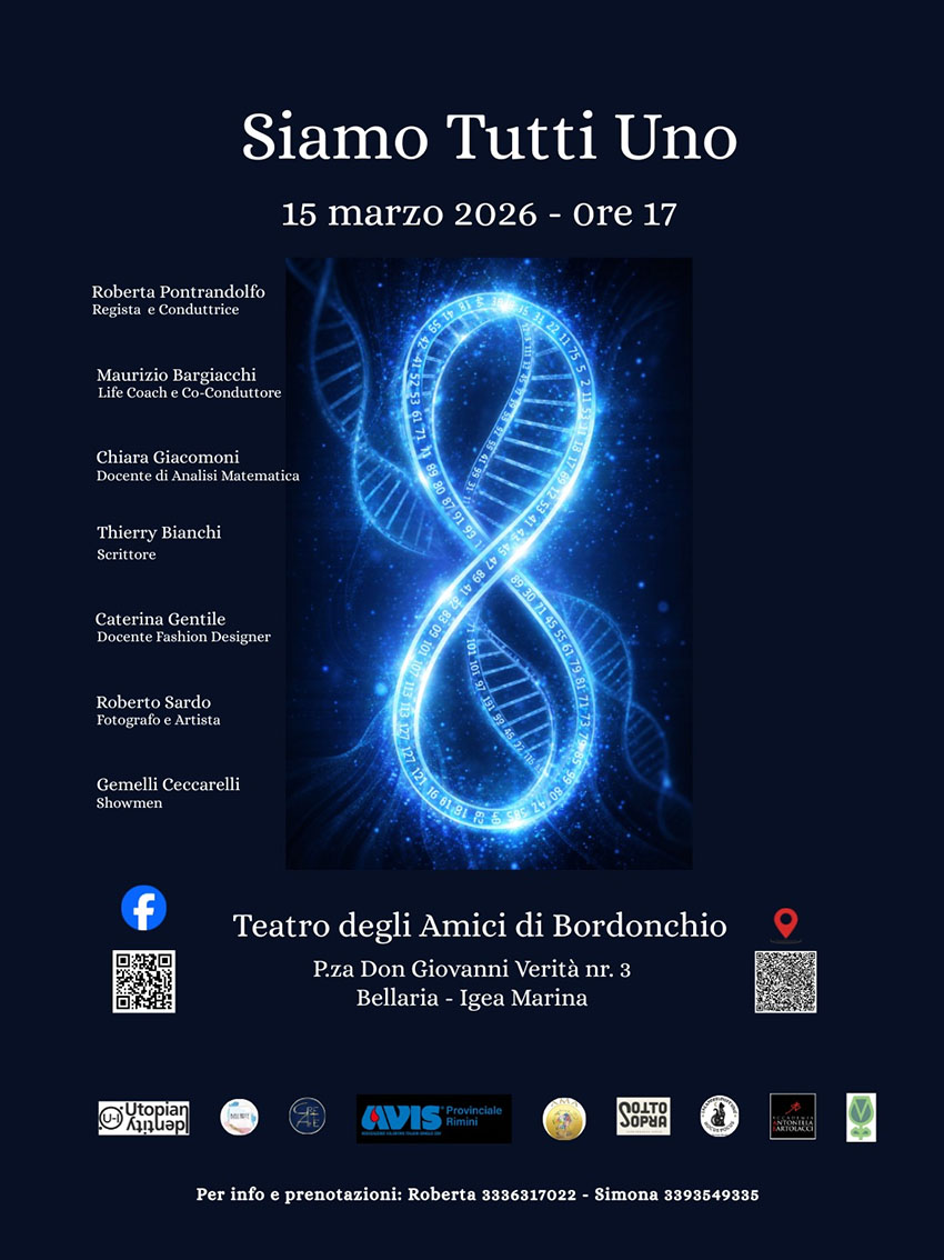 Un mosaico di linguaggi artistici che dialogano tra loro per riflettere sull’evoluzione collettiva e il superamento dell’isolamento digitale. Domenica 15 marzo, alle ore 17:00, il Teatro degli Amici di Bordonchio a Bellaria Igea Marina ospiterà la quarta edizione di “Siamo tutti uno”, lo spettacolo talk-show ideato e diretto da Roberta Pontrandolfo.