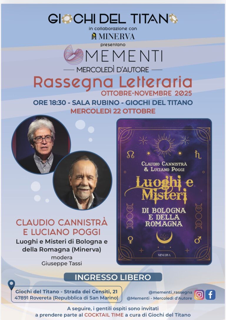 Giochi del Titano. Mercoledì 22 Ottobre ore 18.30 – Mementi, mercoledì d’autore, rassegna letteraria Leggi tutto » 21/10/2025