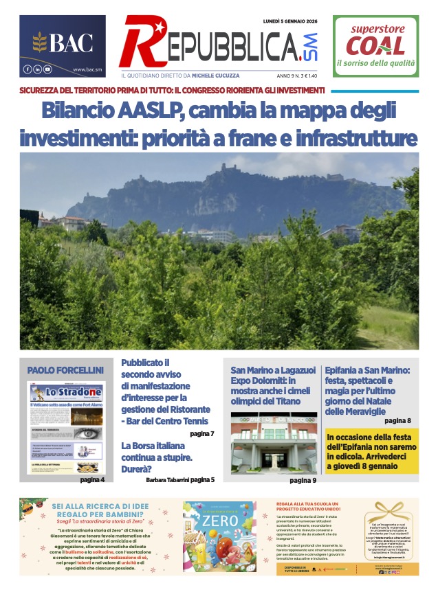 Sarebbe fondamentale che San Marino rifuggisse da schieramenti geopolitici per una neutralità attiva … di Emilio Della Balda Leggi tutto » 05/01/2026