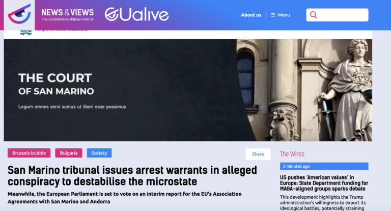 Nuovo articolo di EUALIVE.NET sul Titano: ”Il Tribunale di San Marino emette mandati di arresto in una presunta cospirazione per destabilizzare il micro-Stato” Leggi tutto » 08/02/2026