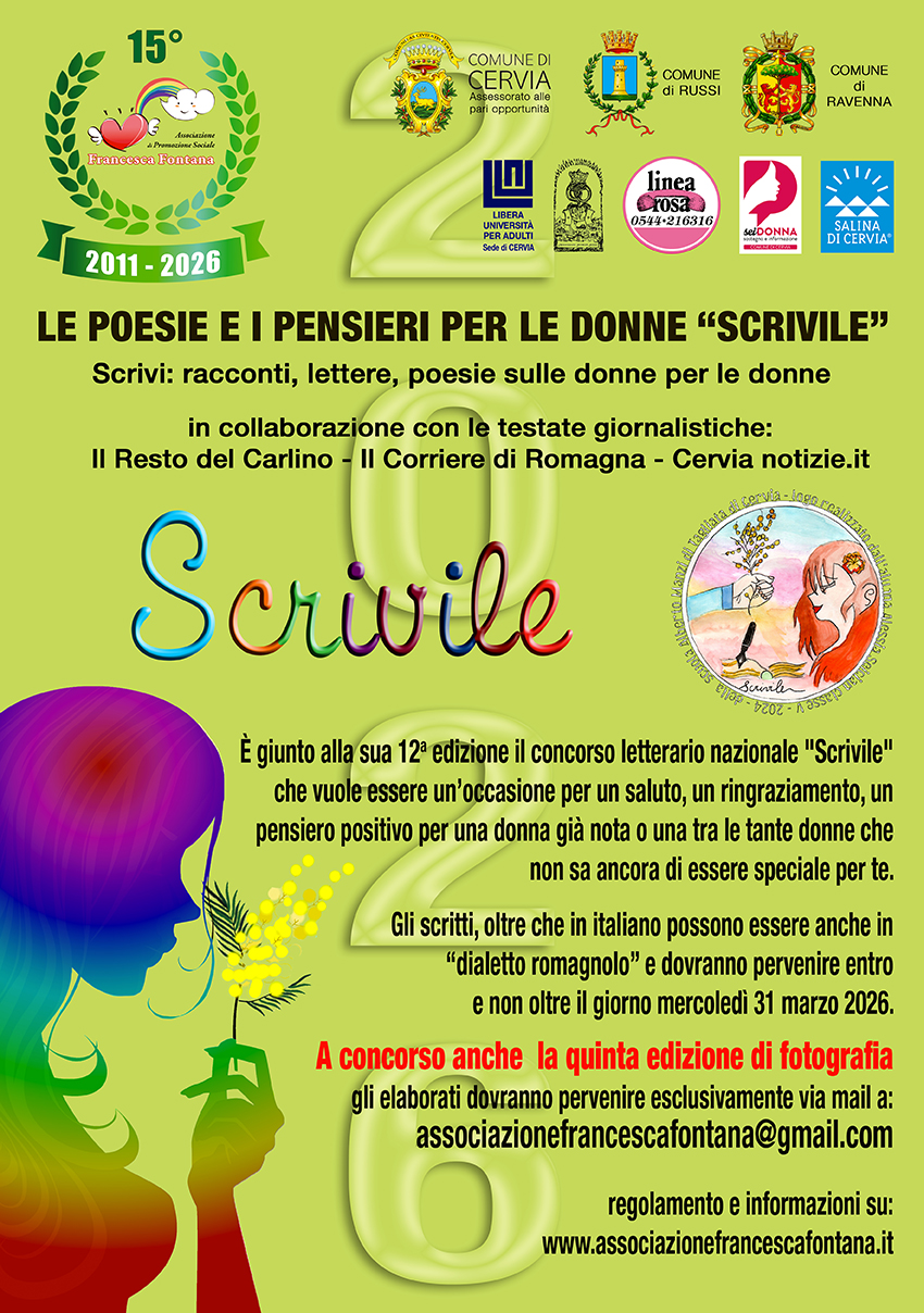 L’iniziativa, promossa dall’Associazione di promozione sociale Francesca Fontana, conferma anche quest’anno la sua vocazione plurale. Come si legge nel comunicato diffuso dagli organizzatori, il concorso si avvale di una fitta rete di collaborazioni territoriali: al fianco dell’associazione ci sono realtà come Linea Rosa Ravenna, lo Sportello Donna di Cervia, l’Istituto Friedrich Schürr per la valorizzazione del dialetto, il Parco della Salina e la Libera Università degli Adulti, con il patrocinio delle amministrazioni comunali di Cervia, Ravenna e Russi.