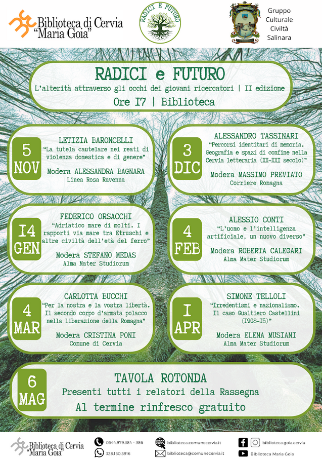 Il percorso di “Radici e Futuro” non si esaurirà con le singole presentazioni. Il calendario culminerà infatti nella primavera del 2026 con una tavola rotonda finale che riunirà tutti i ricercatori e gli esperti coinvolti, trasformando la rassegna in un vero e proprio laboratorio di idee per la crescita culturale della città. Ma intanto, l’attenzione è tutta per mercoledì, quando le parole di Tassinari proveranno a ridisegnare la geografia letteraria di Cervia.