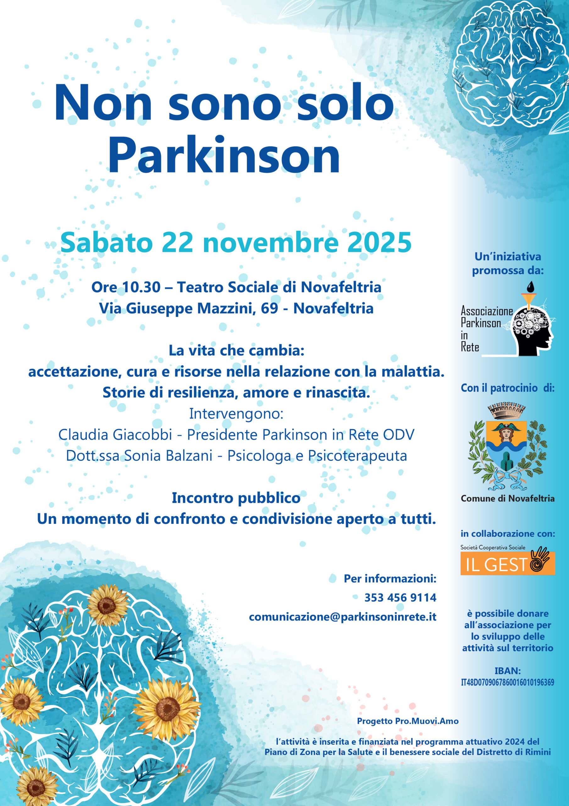 Entrambi gli eventi sono promossi da Parkinson in Rete ODV, con i patrocini delle amministrazioni comunali di Novafeltria, Bellaria-Igea Marina e Riccione.