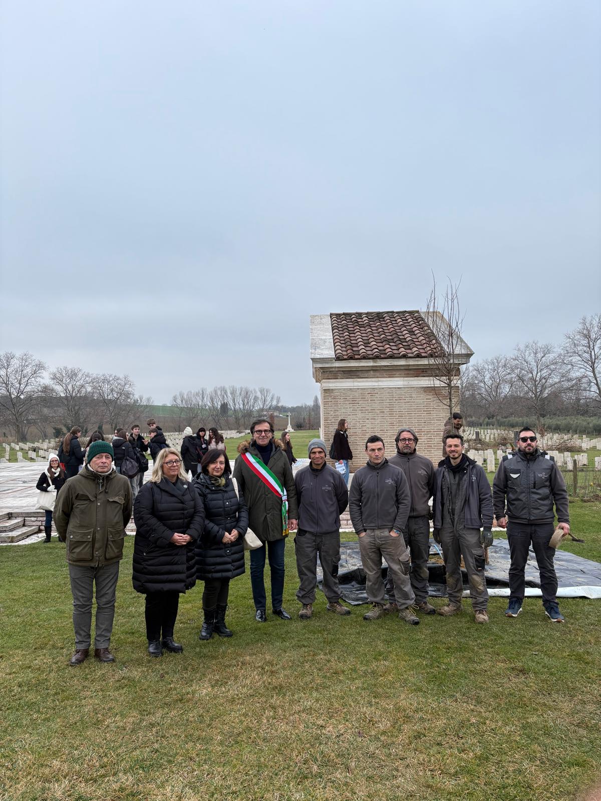 Il sito romagnolo accoglierà complessivamente 50 nuovi fusti, contribuendo non solo al decoro del luogo sacro ma anche all’arricchimento del patrimonio arboreo pubblico. Alla cerimonia odierna hanno partecipato il Sindaco Gianluca Ugolini, l’Assessore all’Ambiente Anna Pazzaglia e l’Assessore all’Istruzione Paolo Ottogalli, affiancati dalla Country Manager Italia della CWGC, Claudia Scimonelli. Protagonisti attivi della giornata sono stati gli studenti dell’Istituto Comprensivo di Coriano che, dopo l’introduzione istituzionale, hanno assistito alla piantumazione simbolica di due alberi e partecipato a un percorso didattico guidato, supportato da nuove schede tematiche sulle vicende della Seconda guerra mondiale.