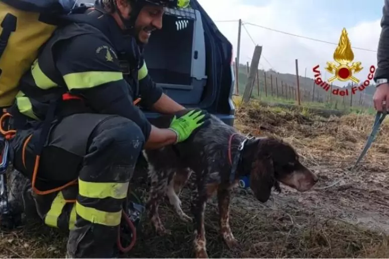 La disavventura è accaduta a un cane da caccia, impaurito ma in buone condizioni, soccorso e recuperato questa mattina dai vigili del fuoco sul monte Fregnano, in provincia di Forlì-Cesena.