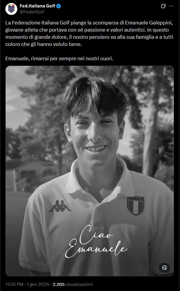 Il dramma dell’incendio che ha devastato la notte di Capodanno in Svizzera si tinge di ulteriore dolore per l’Italia con la conferma della prima giovane vittima italiana. Si tratta di Emanuele Galeppini, diciassette anni, promessa del golf genovese. La notizia è stata diffusa attraverso i canali ufficiali dalla Federazione Italiana Golf, che ha voluto ricordare l’atleta sottolineandone la passione e i valori autentici, stringendosi attorno alla famiglia in questo momento di profonda sofferenza.