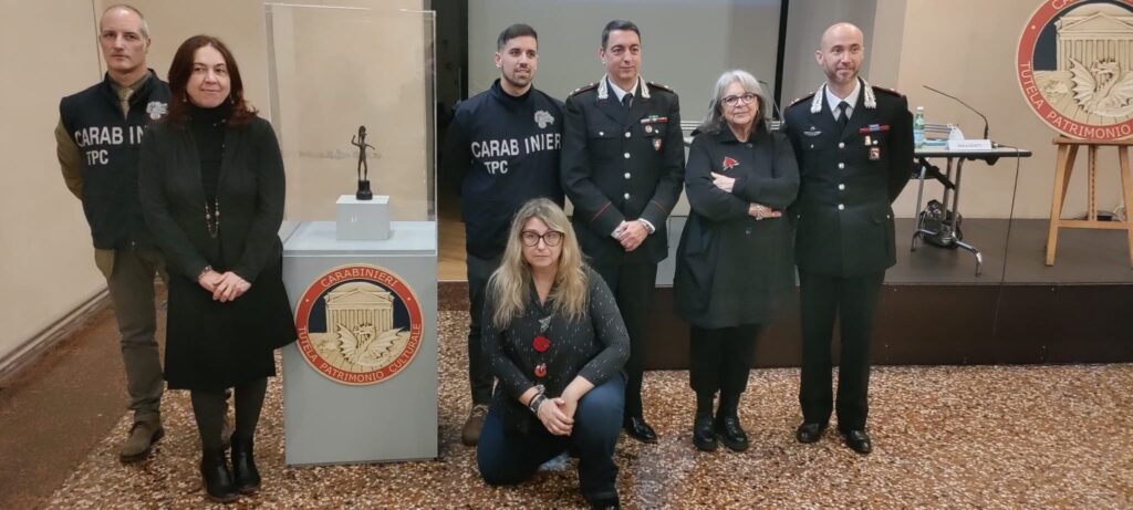 Il 19 dicembre 2025, alle ore 11:00, nella Sala Conferenze del Museo Civico Archeologico di Bologna, sito in via dell’Archiginnasio 2, il Comandante del Nucleo Carabinieri Tutela Patrimonio Culturale di Bologna ha consegnato alla Direttrice del Museo una statuetta in bronzo raffigurante un guerriero etrusco, parziale provento del furto perpetrato in danno del Museo Civico Archeologico di Bologna e denunciato in data 30 ottobre 1963.