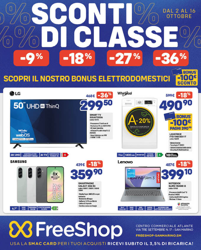 Da FreeShop ti aspettano gli SCONTI DI CLASSE! Tantissimi prodotti con SCONTI che vanno dal 18% al 36%!