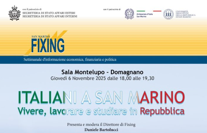 L’iniziativa, intitolata “Italiani a San Marino: risiedere, lavorare e studiare in Repubblica”, è ideata e organizzata da San Marino Fixing in collaborazione e con il sostegno del Comites San Marino. Come reso noto in un comunicato stampa, l’obiettivo è approfondire gli aspetti pratici e normativi che regolano la vita dei tanti italiani che, temporaneamente o permanentemente, usufruiscono dei servizi dello Stato sammarinese.