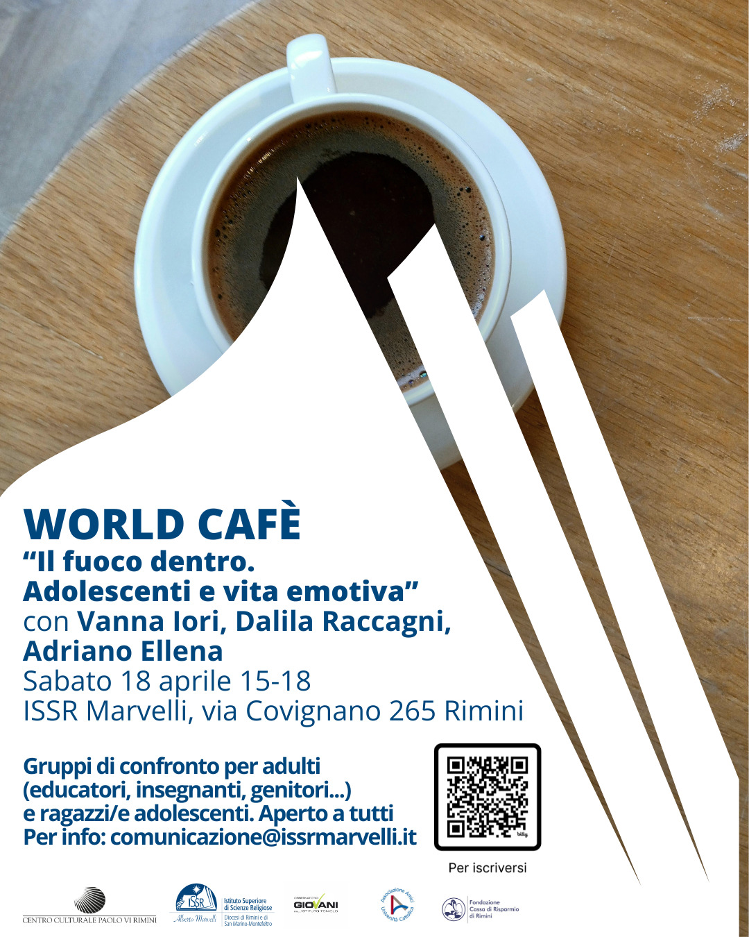 Rimini, marzo 2026 – Si terrà sabato 18 aprile 2026, dalle 15 alle 18, presso l’Aula Magna dell’Istituto Superiore di Scienze Religiose “A. Marvelli” (via Covignano 265, Rimini), l’evento conclusivo del Per-Corso AAC (Ascolto Attivo Cercasi): “Il fuoco dentro. Adolescenti e vita emotiva”.