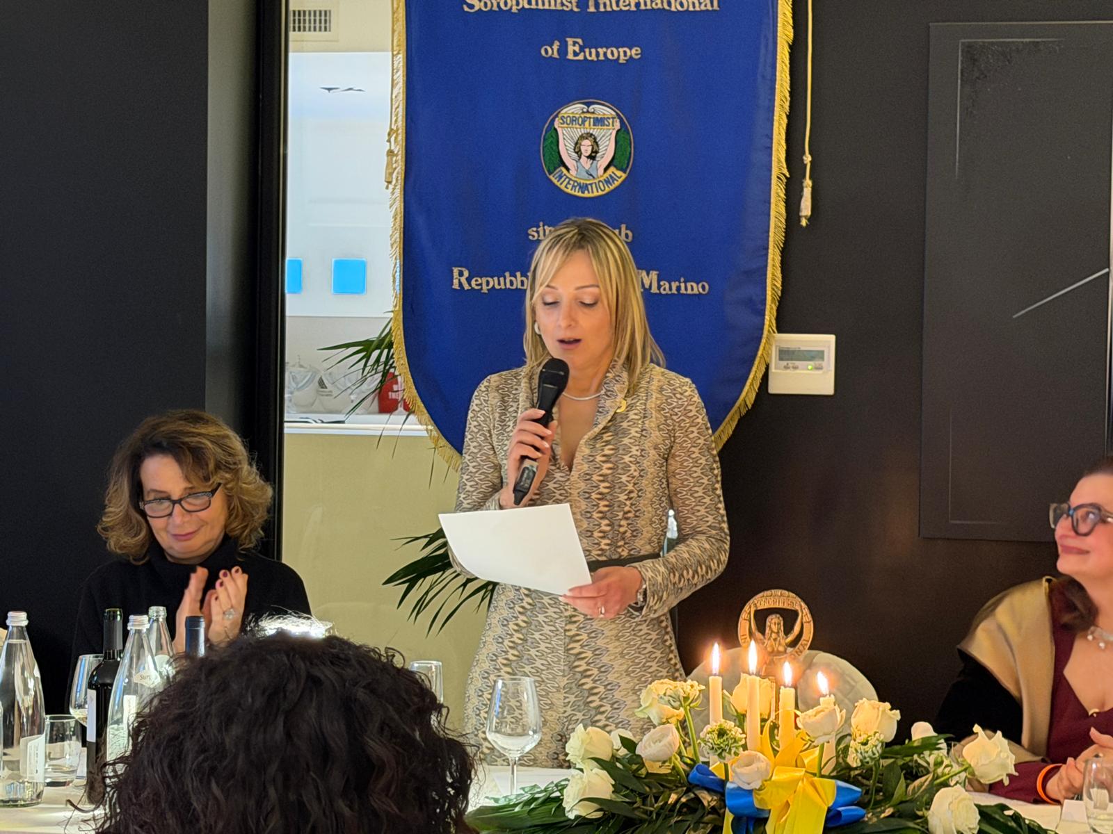 Si è svolta ieri sera, nella suggestiva cornice di Terrazza Giorgia Boutique, la cerimonia del Passaggio della Campana del Soroptimist Single Club della Repubblica di San Marino. L’evento, che ha sancito ufficialmente l’avvicendamento alla Presidenza del Club, ha visto la partecipazione di numerosi ospiti e autorità, tra cui il Segretario di Stato per il Territorio Matteo Ciacci, il Comandante della Gendarmeria Maurizio Faraone, il Presidente del Comitato Olimpico Sammarinese Christian Forcellini e il Capitano di Castello di Domagnano Roberta Cecchini.