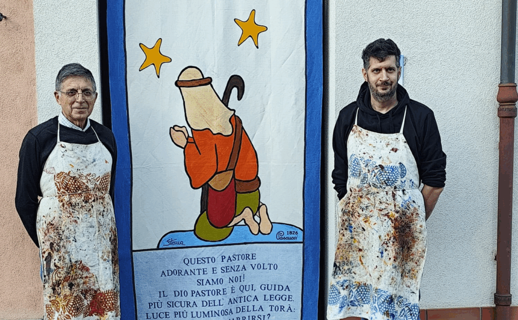 La mostra diffusa, in programma per le festività natalizie, propone un percorso dedicato alla Natività, in cui arte, spiritualità e artigianato si intrecciano. Ventuno tende dipinte a mano, firmate dall’artista forlivese STEMA (Stefano Maltoni), decorano le porte di abitazioni private e attività commerciali, offrendo un impatto visivo sorprendente e poetico. Ogni tenda rappresenta scene della Natività, accompagnate da testi inediti di Suor Gloria Riva, che aggiungono una dimensione contemplativa all’esperienza.