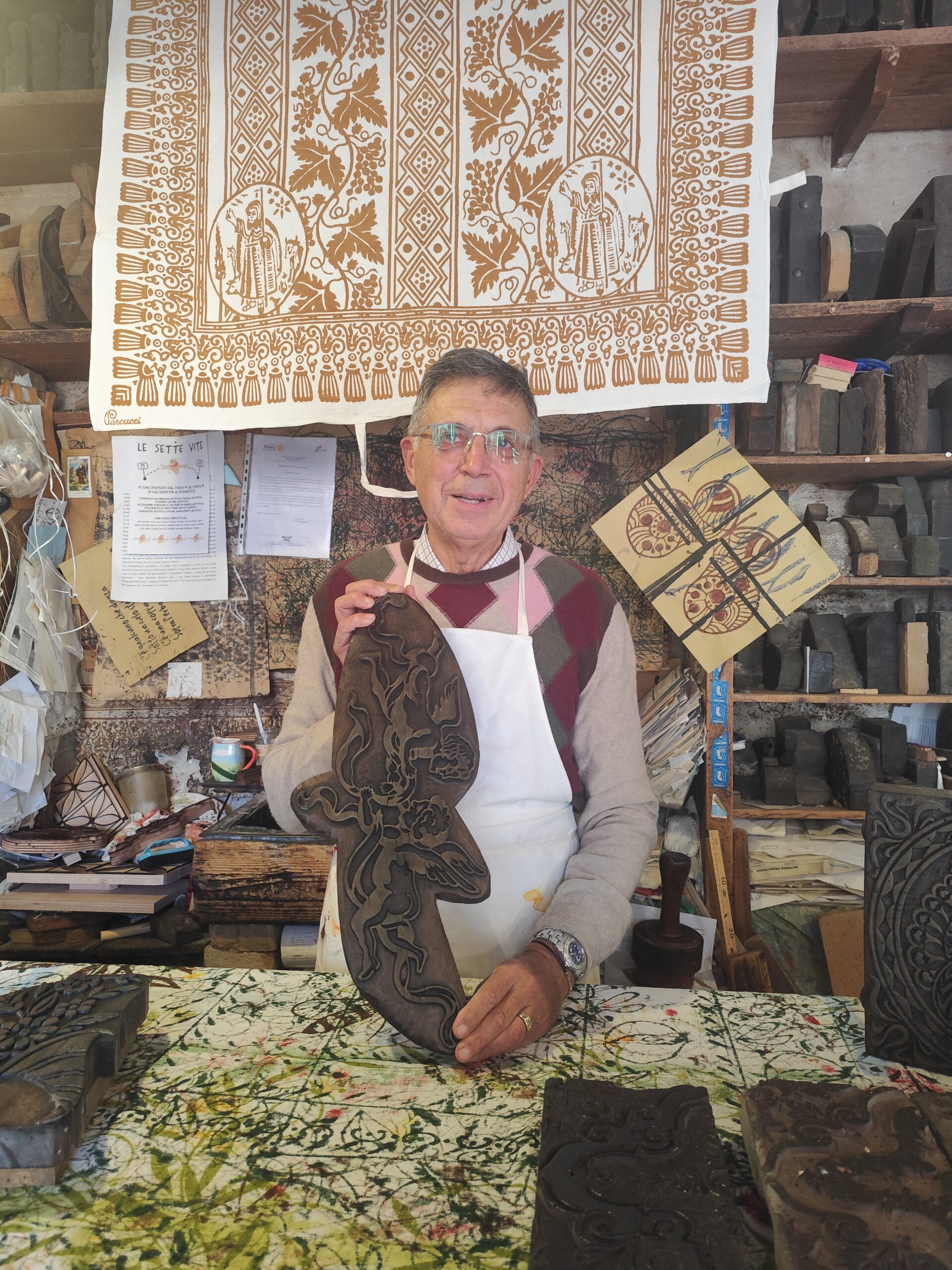 Uno dei momenti più suggestivi della visita sarà l’accesso al locale del mangano ottocentesco, uno spazio solitamente poco accessibile dove venivano lavorati i tessuti e dove sono ancora conservati volumi e materiali d’archivio. Il percorso si concluderà nell’antico laboratorio di stampa, vero cuore pulsante dell’attività artigiana della famiglia Pascucci da otto generazioni.