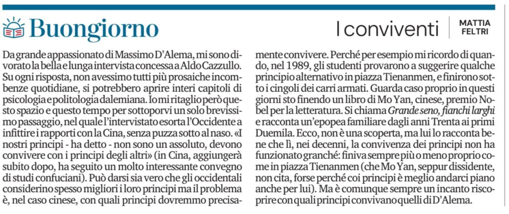 Come scrive Feltri, i principi di D’Alema, di convivenza fra i popoli, sono proprio bizzarri.
