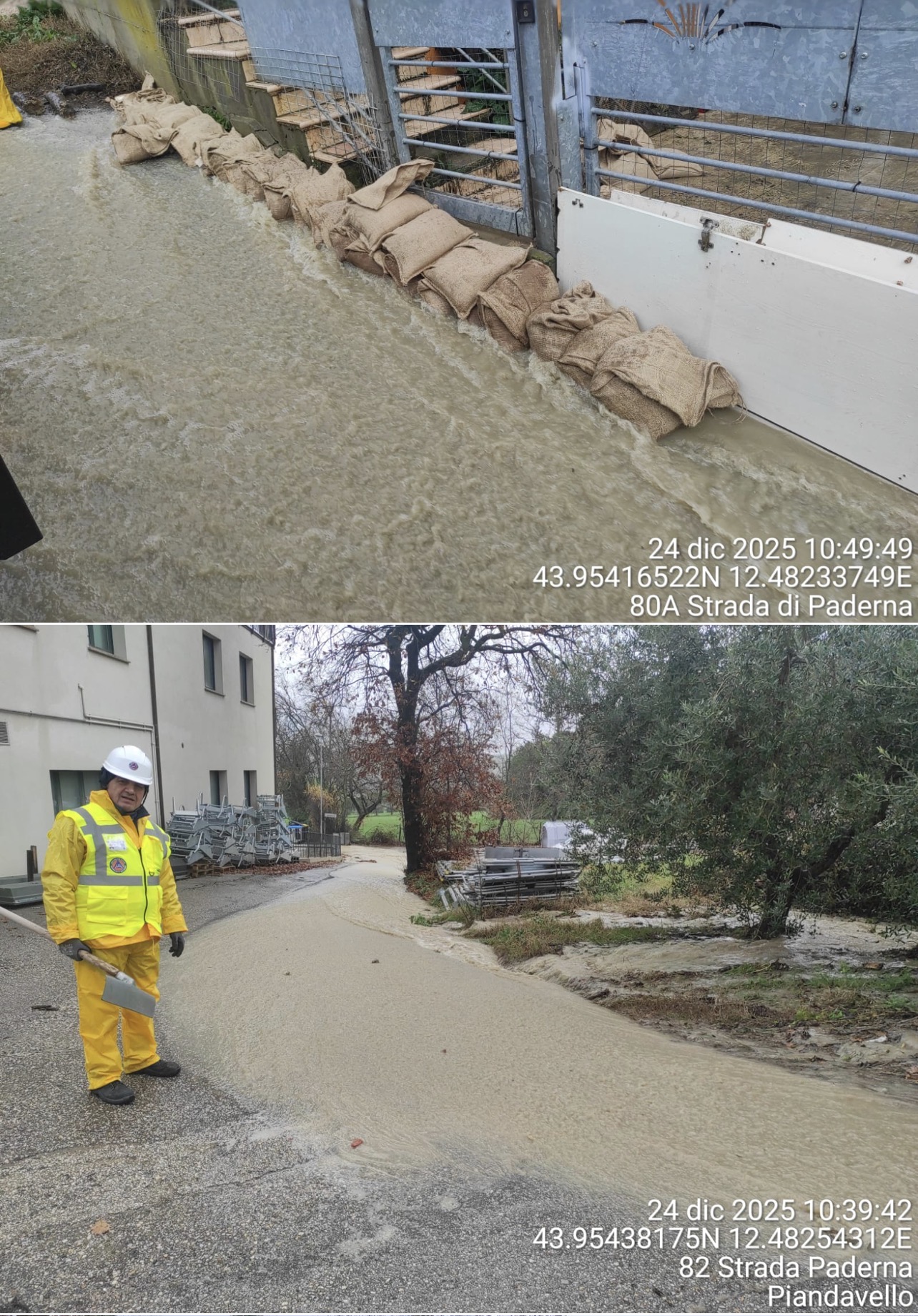 Il maltempo che ha colpito pesantemente e in vario modo la Regione Emilia Romagna durante le festività natalizie, ha visto i Volontari di Protezione Civile intervenire sul territorio della Repubblica di San Marino per un’emergenza idraulica e idrogeologica nella zona del Castello di Domagnano.
