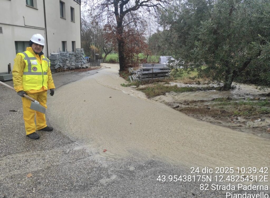 Il maltempo che ha colpito pesantemente e in vario modo la Regione Emilia Romagna durante le festività natalizie, ha visto i Volontari di Protezione Civile intervenire sul territorio della Repubblica di San Marino per un’emergenza idraulica e idrogeologica nella zona del Castello di Domagnano.
