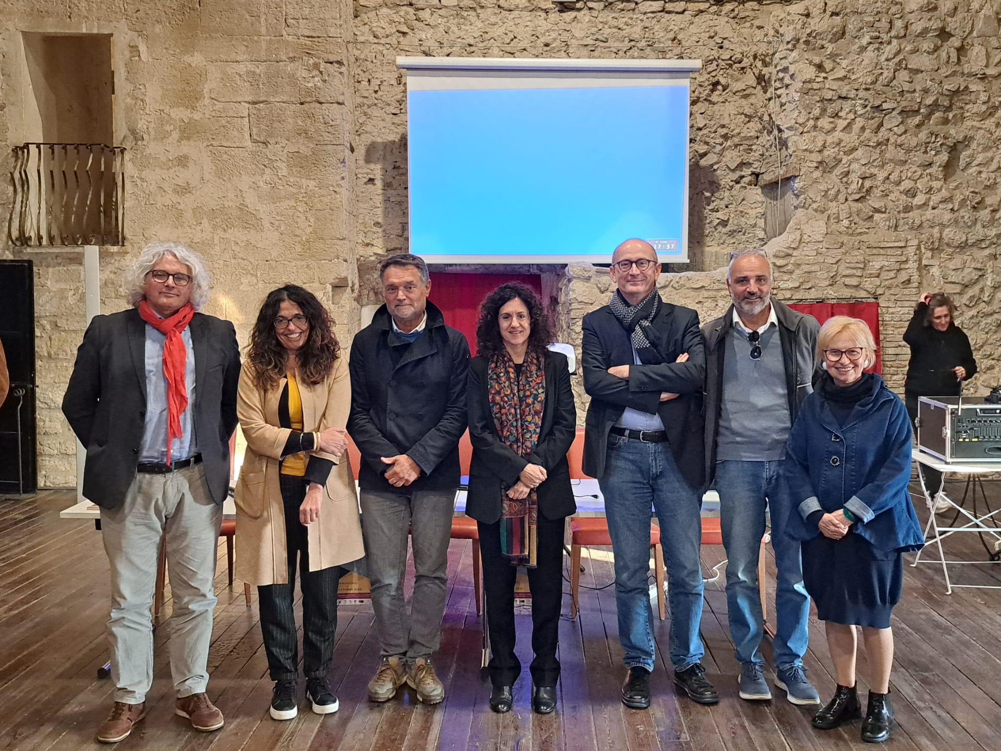 De Carolis, tra i curatori della mostra “Adalberto Pazzini (1898–1975). La reinvenzione della storia tra Verucchio e Roma”, ha ripercorso il profondo legame tra Pazzini e Verucchio e il suo contributo ai restauri della Rocca nel Novecento. Iannucci ha presentato alcune esperienze di FrameLAB, laboratorio che esplora l’uso delle tecnologie digitali per la valorizzazione del patrimonio culturale, mentre Balzani, Raco e Galvani hanno illustrato il lavoro di rilievo e modellazione HBIM realizzato presso la Rocca, esempio innovativo di documentazione digitale dei centri storici minori.