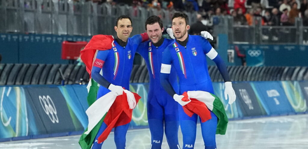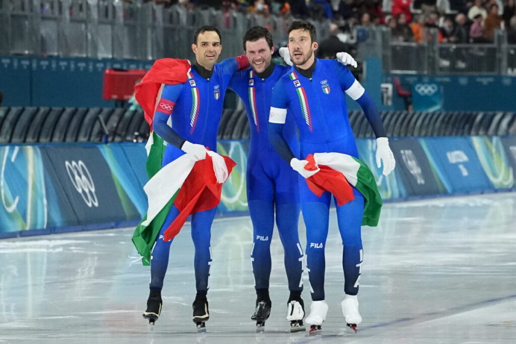 L’Italia trionfa nella team pursuit di speed skating. Capolavoro azzurro a Rho Fiera, dove gli azzurri battono gli Stati Uniti trionfano a vent’anni di distanza dal titolo olimpico di Torino 2006. Davide GhiottoAndrea Giovannini e Michele Malfatti, tutti e tre over 30, fanno impazzire il pubblico milanese e i tifosi a casa al termine di una finale giocata a ritmi infernali e in cui gli azzurri partono più forte, poi subiscono la rimonta degli Usa, infine negli ultimi due giri fanno vedere di che pasta sono fatti. Straordinario Ghiotto, che prende più volte la testa a guidare il terzetto e trascina i compagni. Oggi può finalmente esultare lui che era uno degli uomini più attesi a questi Giochi in casa.