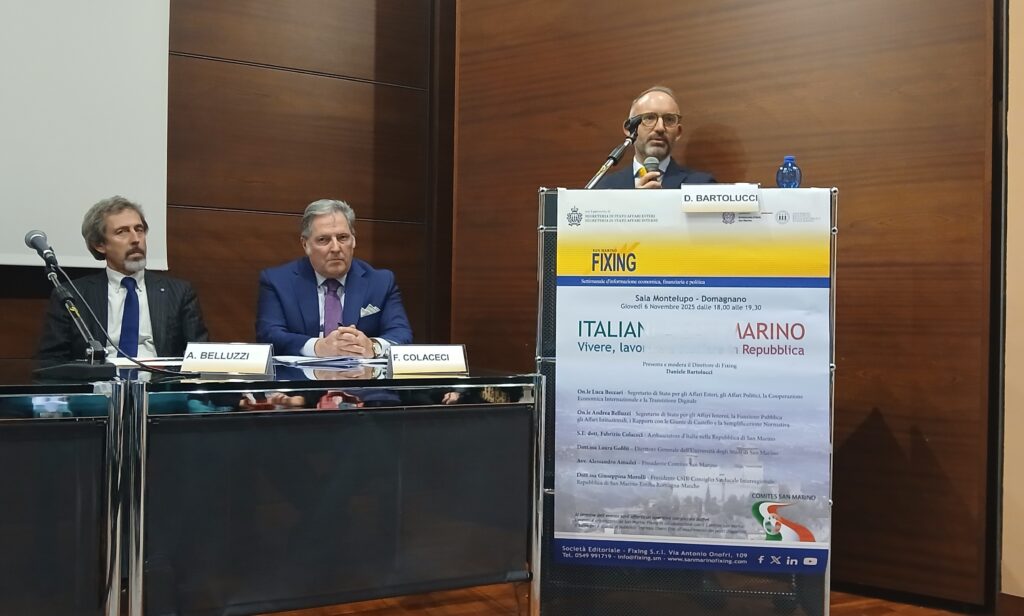 Platea delle grandi occasioni e relatori d’eccellenza per il convegno ideato e organizzato da Fixing, in collaborazione e con il sostegno del Comites sul tema: “Italiani a San Marino”, specificatamente mirato sugli aspetti del lavoro, della residenza e dello studio sul Titano. Un quadro ad ampio spettro dei punti di attrazione, dei reciproci benefici e delle tante particolarità che caratterizzano il rapporto tra due Stati senza frontiere.