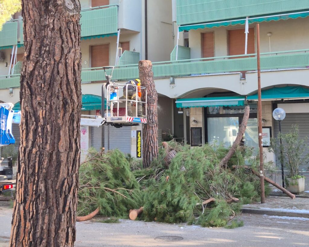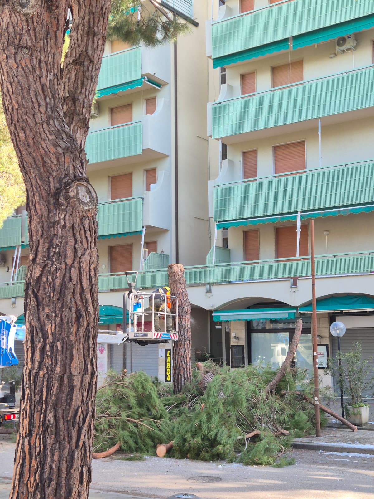 Esposta solo 24 ore prima un’ordinanza apparentemente innocua, che parla di “manomissioni del manto stradale” e non certo di abbattimenti, quatte quatte e ben scortate di forze dell’ordine, le motoseghe di Deltambiente sono arrivate in viale Romagna. Violato l’obbligo delle 48 ore di preavviso che secondo la legge (Codice della Strada) sono previste per i lavori sulle pubbliche vie. Violata anche la stessa ordinanza comunale fasulla, che non parla affatto di abbattimenti. Ma ormai, in questa vicenda, pur di arrivare allo scopo di perseguitare ed abbattere alberi sani e sfigurare per sempre il viale principale di Lido di Savio, abbiamo visto di tutto: ordinanze cambiate nottetempo, agronomi che sottoscrivono perizie con fattori non rispondenti allo stato dei luoghi, Comune che si riempie la bocca di “ascolto” e “partecipazione” e poi rifiuta di incontrare i cittadini, progettisti che non distinguono un pino domestico da un marittimo, assessori che non rispondono alle interrogazioni o che dichiarano, giusto pochi giorni fa, che i fondi PNRR per il famigerato Parco Marittimo a Lido di Savio sono sfumati. Non è servito l’impegno di anni di tanti cittadini, agronomi, dottori forestali noti in tutta Europa, arboricoltori giunti persino dalla Svizzera, dell’ideatore delle prove di trazione, non è servita la solidarietà di tutti i gruppi d’Italia a favore della tutela degli alberi. Un’onta per la città di Ravenna, che sfregia il suo patrimonio arboreo urbano senza vergogna, nascondendo le mani, la faccia e le carte, infischiandosene di cittadini, salute pubblica, biodiversità, soldi pubblici, decoro, turismo. Nove pini del viale Romagna sono stati oggi abbattuti, mettendo in luce lo squallore dell’edilizia intensiva degli anni 60/70 che ha devastato le nostre coste e che i pini ingentilivano con armonia e discrezione. Il gruppo di cittadini, accorsi sul luogo appena possibile, ha cercato in tutti i modi di fare valere le ragioni della legge, ovvero il mancato preavviso nelle 48 ore e l’ordinanza specifica di abbattimento totalmente assente, ma nessuna forza dell’ordine presente o contattata invano telefonicamente, li ha ascoltati. Il loro impegno per quanto successo e per i 30 pini rimasti dei 71 presenti prima del famigerato progetto del “Parco” dove si abbattono gli alberi non si fermerà certamente qui.