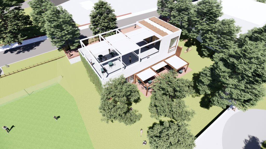 Poiché il finanziamento non consentiva di realizzare l’intero masterplan, il progetto si è concentrato sulla riqualificazione dell’area adiacente al Campo dei Tigli. Questo spazio sarà trasformato in un’area verde fruibile dalle famiglie, con l’integrazione di ulteriori funzioni. È prevista l’acquisizione dell’immobile esistente, la cui destinazione sarà definita attraverso un percorso partecipativo con la cittadinanza, orientato a finalità culturali, ricreative o turistiche.